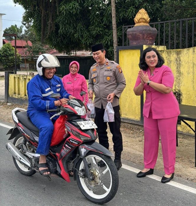 Singingi Hilir- Dalam rangka meningkatkan kepedulian sosial serta mempererat hubungan dengan masyarakat di bulan suci Ramadhan 1447 H, keluarga besar Polsek Singingi Hilir bersama Bhayangkari menggelar kegiatan berbagi takjil kepada masyarakat, sekitar pukul 17.30 WIB. Sabtu (14/3/2026)